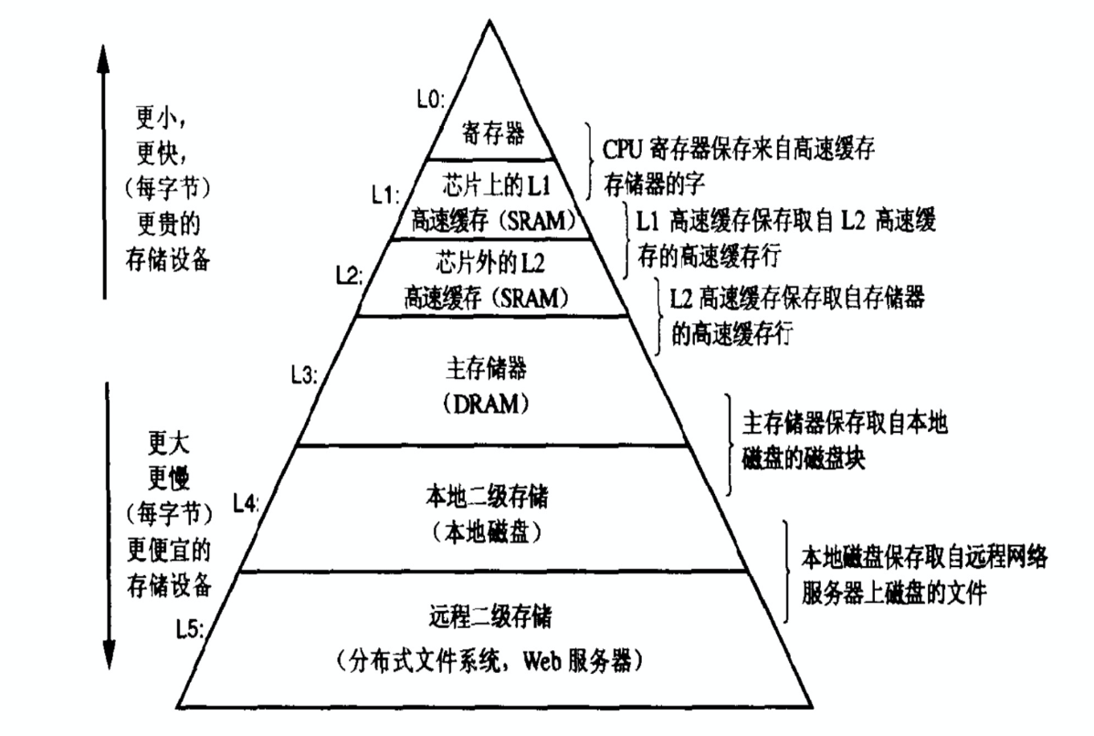 在处理器和一个较大较慢的设备(例如主存)之间插入一个更小、更快的存储设备(比如高速缓存)的想法成为一个普遍观念。