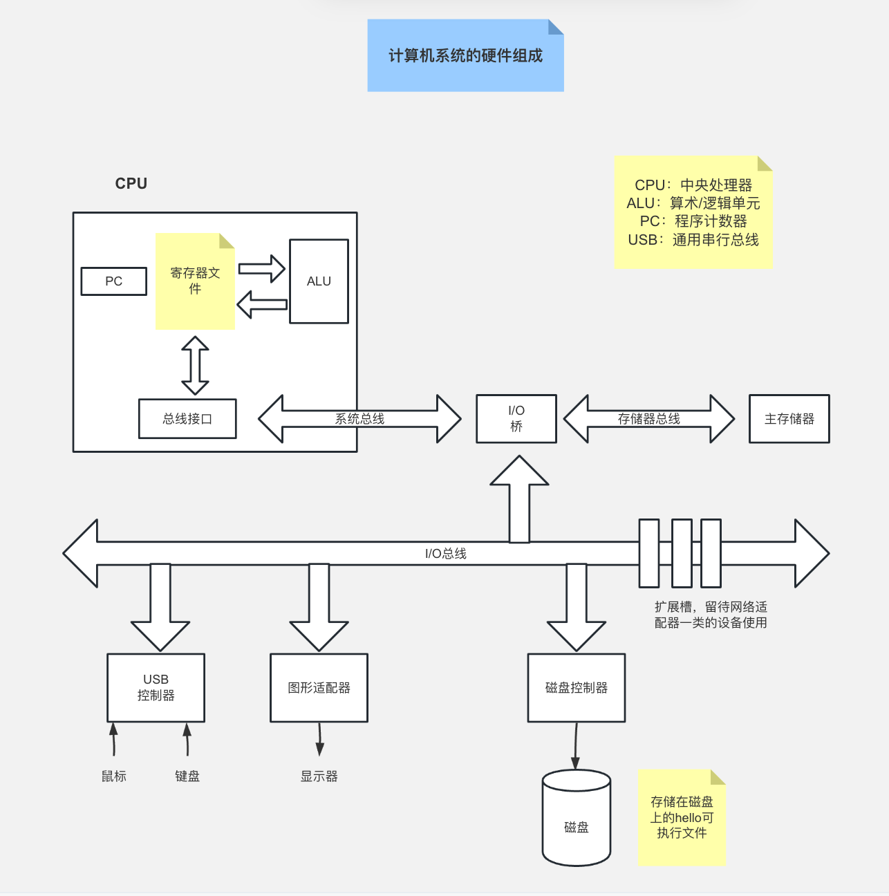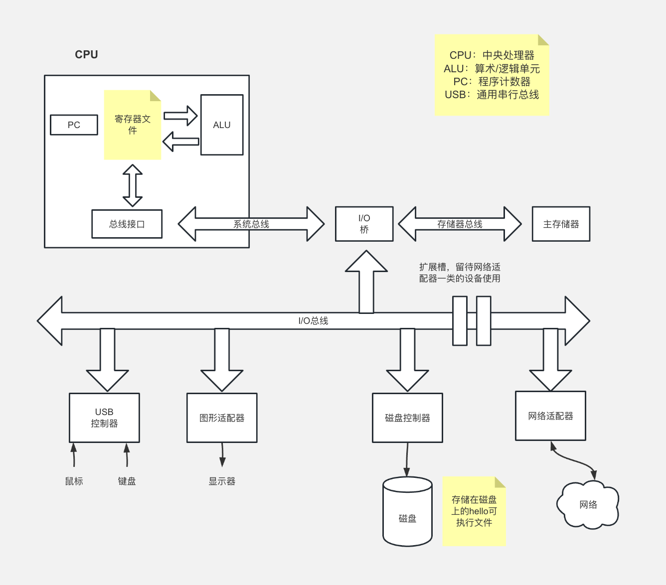 键盘输入指令,回车shell知道我们已经结束了命令的输入。键盘输入通过I/O总线到寄存器文件,触发I/O中断。