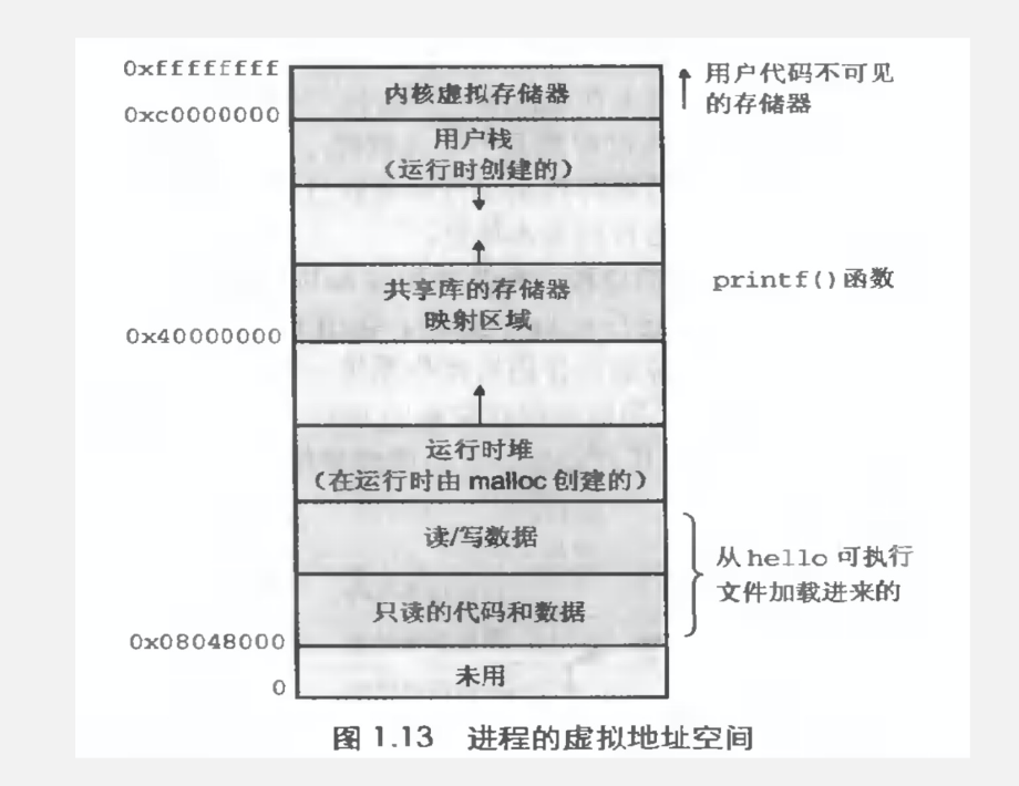 像hello这样的程序在现代操作系统上运行时,操作系统会提供一种假象,就好像系统上只有这个程序在运行。程序看上去独占地使用处理器、主存和I/O设备,而处理器看上去就像不间断的一条接一条地执行程序中的指令。该程序的代码和数据就好像是系统存储器中唯一的对象。这些假象是通过进程的概念来实现的,进程是计算机科学中最重要和最成功的概念之一。