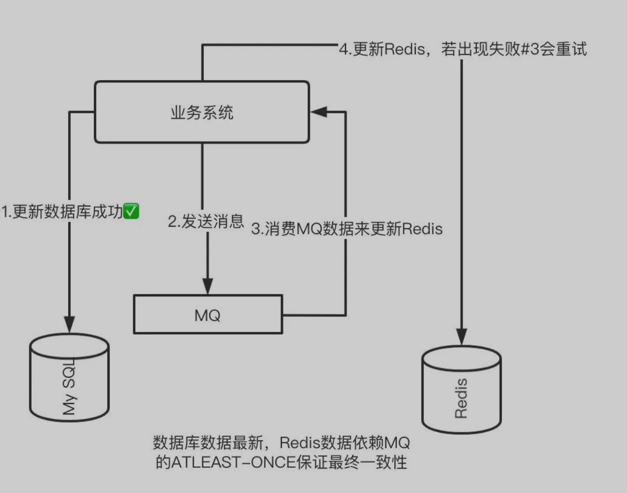 这是我们最终一致性的兜底方案,万一出现任何情况的不一致问题,最后都能通过缓存失效后重新查询数据库,然后回写到缓存,来做到缓存与数据库的最终一致。
