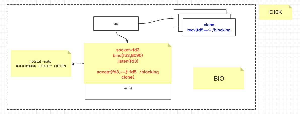 BIO随着连接数的过大,C10K要抛出10K的线程